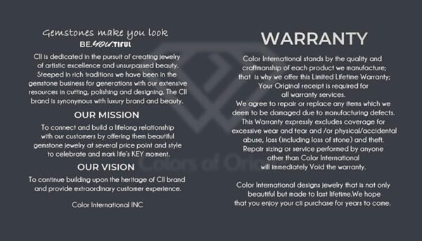 - EXCEPTIONAL CRAFTSMANSHIP – Featuring 13 ct of gemstones and a total weight of 4.56 g, Color International’s carefully mastered craft ensures accurate and precise level of technical details in every piece